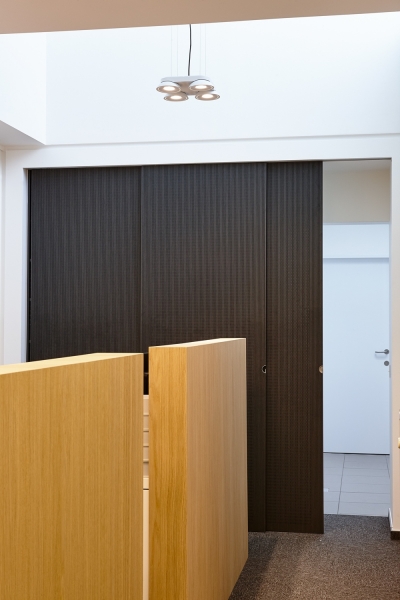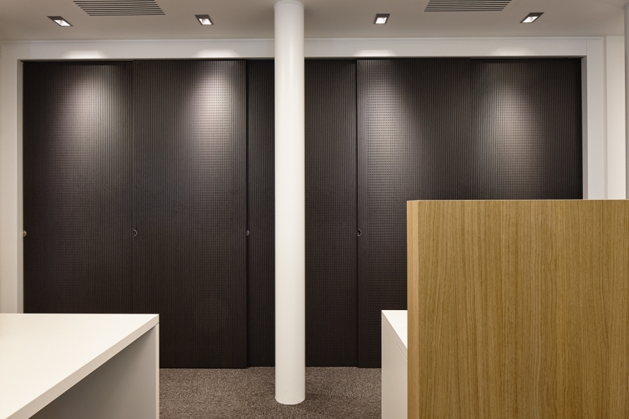 Portes d'armoires coulisantes acoustiques absorbants type Ds sur mesure dans un bureau