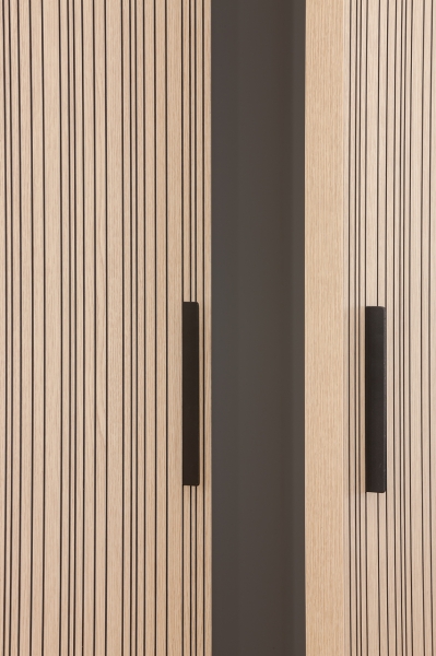 Akoestisch dempende kast- en schuifdeur met 8,75 % random perforatie in combinatie met dwarse doorga..