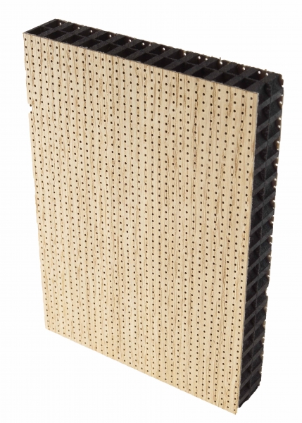 Ame MDF noir hydro de 2 x 9 mm avec voile acoustique en fibre de verre au centre.