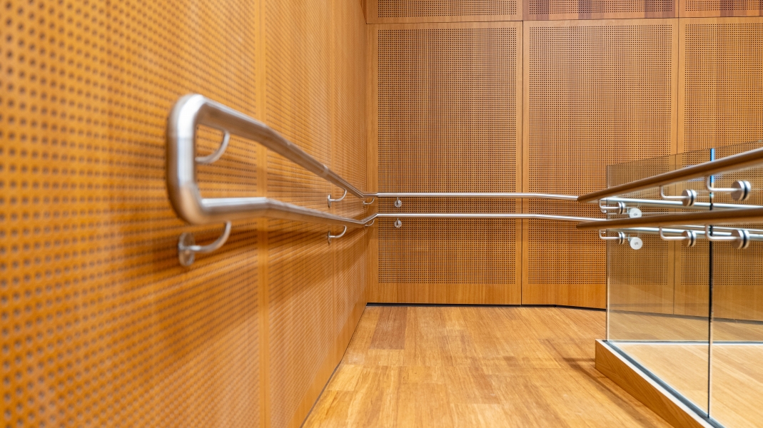 Wij ambiëren de schoonheid van hout te combineren met de vermindering van nagalm door van stemgeluid.