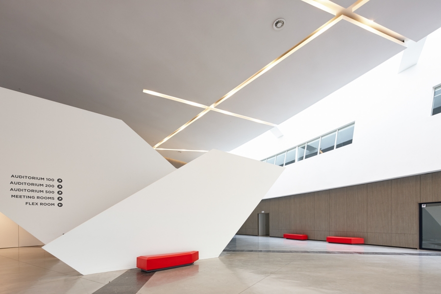 Akoestisch dempende panelen type G in een meeting center