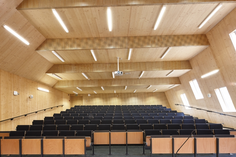 We develop our acoustic absorbing panels to absorb and reduce all kinds of annoying noises in rooms. This increases the acoustic comfort, also in areas with larger audiences and a lot of background noise. Improved acoustics imply a reduction of sound reflection as well as sound resonance time and level. This improved comfort is achieved by transforming sound into mechanic energy (vibration or heat) in the panel and the underlying wool. Part of the energy of the sound wave which comes into contact with our panel is reflected back into the room. Another part is absorbed by the material and the last part goes through the panel into the underlying insulation layer.